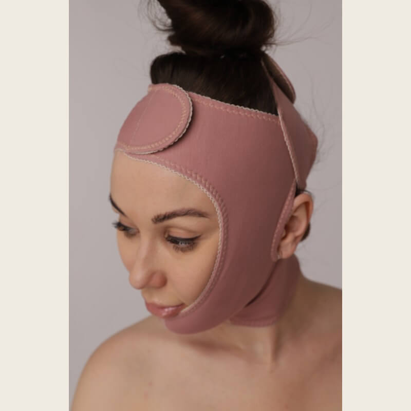 Бандаж компрессионный для лица арт.200 (женский) - компрессионная маска для лица для женщин используется после подтяжки, фейслифтинга, липосакции подбородка, шеи, щёк. Бандаж из гипоаллергенной эластичной дышащей ткани. В составе ткани содержится Aloe Vera. На нитях волокон расположены микрокапсулы с экстрактом Алоэ вера. При ношении бандажа из капсулы на кожу выделяется небольшая доза экстракта. Микрокапсулы устойчивы к повреждению, выделяются только, когда изделие сухое, то есть при стирке экстракт Алоэ вера не расходуется. Уникальные свойства такой ткани сохраняются и после 100 стирок. Бандаж универсального размера, плотное прилегание и компрессия регулируется удобными застёжками-липучками велкро с широкой крючковой областью.