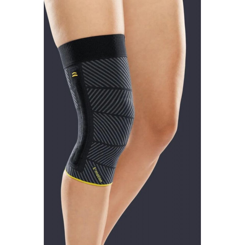 Коленный бандаж GENUMEDI E+motion с пателлярным кольцом арт. 613E предназначен для лечения болей и стабилизации коленного сустава при травмах мягких тканей, артрите и артрозе, синовите, пателлофеморальном артрозе, субъективной нестабильности. Компрессионная ткань и силиконовое кольцо оказывают проприоцептивное действие, что способствует более быстрому рассасыванию отека и ликвидации воспаления. Кроме того, силиконовое кольцо стабилизирует надколенник. Бандаж состоит из анатомически связанной компрессионной манжеты по технологии круговой вязки. По бокам манжеты находятся ребра жесткости, а спереди вокруг надколенника – силиконовое кольцо. Полотно бандажа связано из высоко технологичного материала с применением технологий Clima Comfort, Clima Fresh и Comfort Zone.
