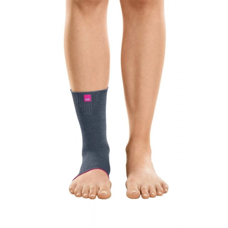 Бандаж голеностопный для стабилизации ахиллова сухожилия medi ACHIMED арт. 512 предназначен для лечения боли и стабилизации при травмах и заболеваниях ахиллова сухожилия, в частности при ахиллодинии, ахиллобурсите, остром и хроническом воспалении ахиллова сухожилия, при посттравматическом и послеоперационном воспалении. Компрессионная ткань и силиконовые вставки оказывают проприоцептивное действие, что способствует более быстрому рассасыванию отека и ликвидации воспаления. Дополнительно, силиконовая вставка защищает ахиллово сухожилие от внешнего механического воздействия. Бандаж состоит из анатомически связанной компрессионной манжеты и силиконовой вставки, прикрывающей ахиллово сухожилие. Полотно бандажа связано из высоко технологичного материала с применением технологий Clima Comfort, Clima Fresh и Comfort Zone.