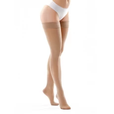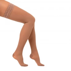 - простая резинка чулок имеет гипоаллергенное силиконовое точечное покрытие, надёжно фиксирует чулок на ноге, не нарушая кровоток;