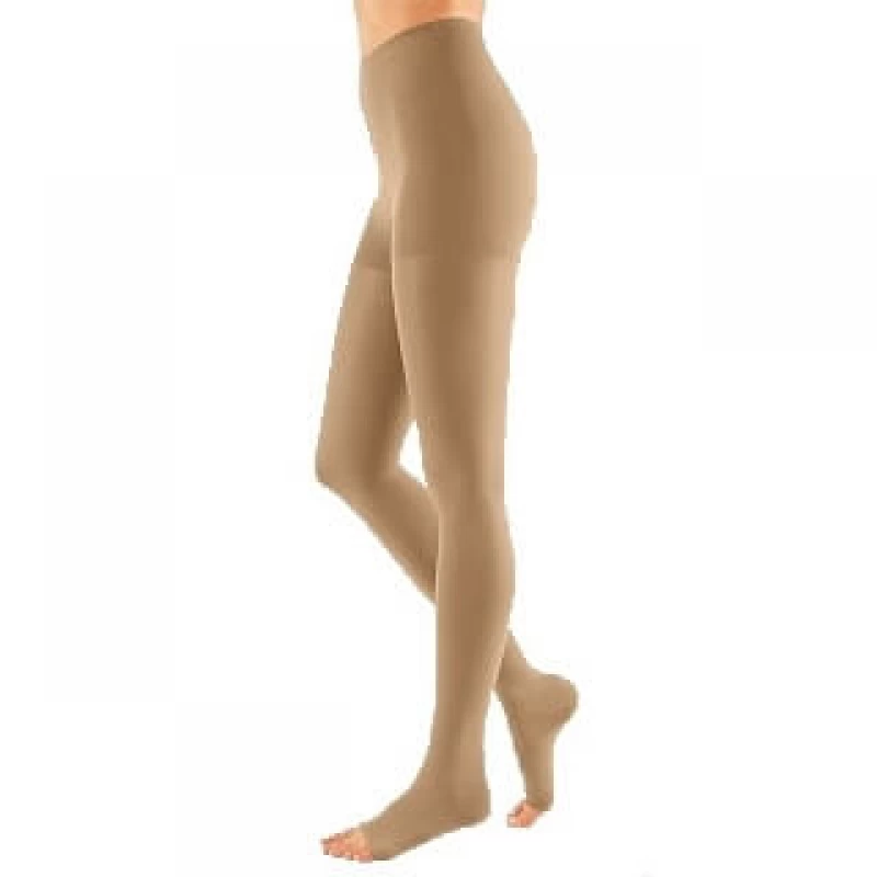 Колготки МЕДИ DUOMED 1 класс компрессии с открытым мыском (AG - 62 - 71 см) арт. DO117 используются для предотвращения развития хронической венозной недостаточности, способствуют снятию отечности, избавлению от "синдрома тяжелых ног", также применяются во время беременности, для профилактики варикозной болезни. Открытый мысок рекомендуется людям с нестандартной стопой (большого или маленького размера), для ношения изделия в летнее время с открытой обувью, способствует лучшему потоотведению. Компрессионные колготки с открытым мыском более долговечны (не протирается и не рвется зона в области пальцев ног), их проще и легче надевать Укрепленная пяточная область продлевает срок использования изделия, а удобная резинка обеспечивает надежную фиксацию комфорт при носке. Колготки модельного ряда DUOMED обеспечивают высокую медицинскую эффективность при хорошем соотношении цена / качество. Применение инновационной пряжи - Clima Fresh обеспечивает антибактериальный и антигрибковый эффект в носочной части изделия, за счет включения серебра в структуру нитей.