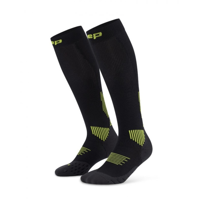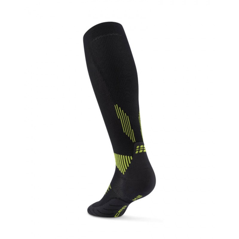 Мужские компрессионные гольфы CEP для бега арт. C125M-5Y, цвет черный-лайм спортивные гольфы для различных видов спорта. Гольфы изготовлены из высокотехнологичных материалов по технологии круговой вязки. Асимметричный носок и усовершенствованная конструкция создают более совершенную анатомическую посадку, гольфы отлично сидят на ноге, не сползают, не натирают. Поддерживающая компрессия улучшает циркуляцию крови в стопе и предотвращает образование отеков во время использования. Специальные технологии влагоотведения и терморегуляции обеспечивают сухость ног в любую погоду.