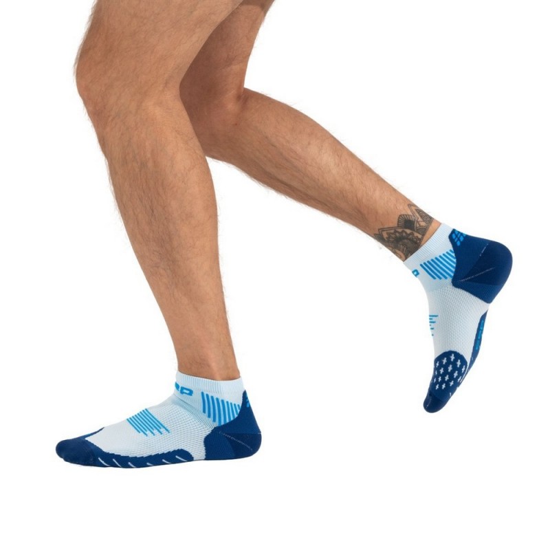 Мужские компрессионные короткие носки CEP арт. C095M-I3, цвет ледяной-синий изготовлены из высокотехнологичных материалов по технологии круговой вязки, используются в различных спортивных дисциплинах для достижения максимального комфорта при тренировках, способствуют снижению риска получения травм. Благодаря анатомической посадке носки отлично сидят на ноге не сползают, не натирают. Поддерживающая компрессия улучшает циркуляцию крови в стопе и предотвращает образование отеков во время тренировок. Специальные технологии влагоотведения и терморегуляции обеспечивают сухость ног в любую погоду. Подошва носков имеет хорошее сцепление с обувью, что повышает устойчивость при движении.