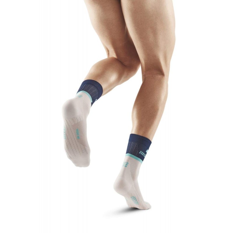 Мужские компрессионные спортивные носки CEP арт. C104M-N0, цвет синий-белый изготовлены из высокотехнологичных материалов по технологии круговой вязки. Асимметричный носок и усовершенствованная конструкция создают более совершенную анатомическую посадку, носки отлично сидят на ноге, не сползают, не натирают. Поддерживающая компрессия улучшает циркуляцию крови в стопе и предотвращает образование отеков во время использования. Специальные технологии влагоотведения и терморегуляции обеспечивают сухость ног в любую погоду. Мягкая подошва и анатомический дизайн изделий способствует максимальному комфорту во время тренировок.