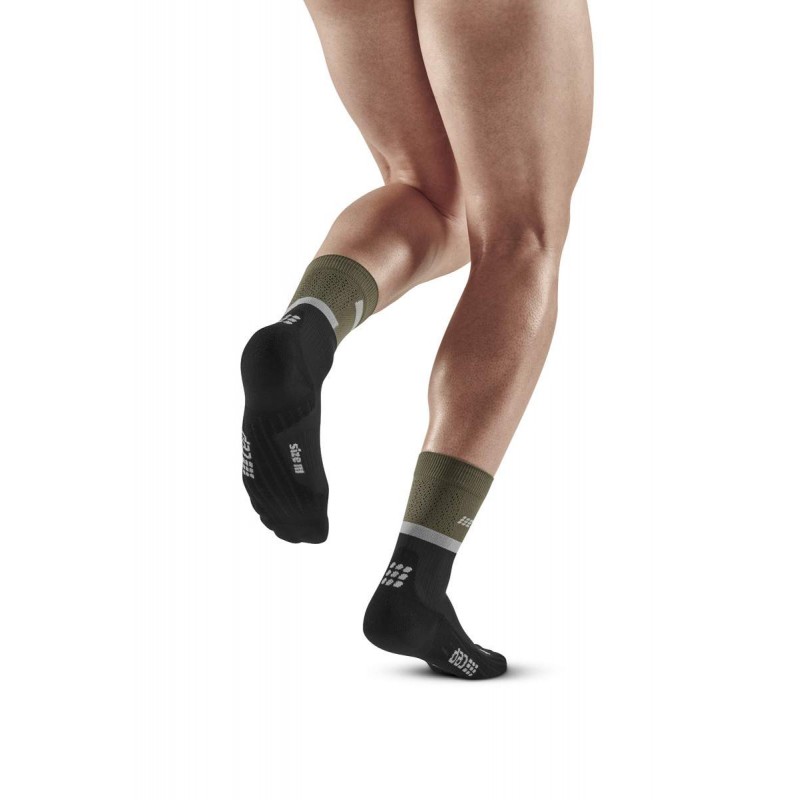 Мужские компрессионные спортивные носки CEP арт. C104M-O5, цвет оливковый-черный изготовлены из высокотехнологичных материалов по технологии круговой вязки. Асимметричный носок и усовершенствованная конструкция создают более совершенную анатомическую посадку, носки отлично сидят на ноге, не сползают, не натирают. Поддерживающая компрессия улучшает циркуляцию крови в стопе и предотвращает образование отеков во время использования. Специальные технологии влагоотведения и терморегуляции обеспечивают сухость ног в любую погоду. Мягкая подошва и анатомический дизайн изделий способствует максимальному комфорту во время тренировок.