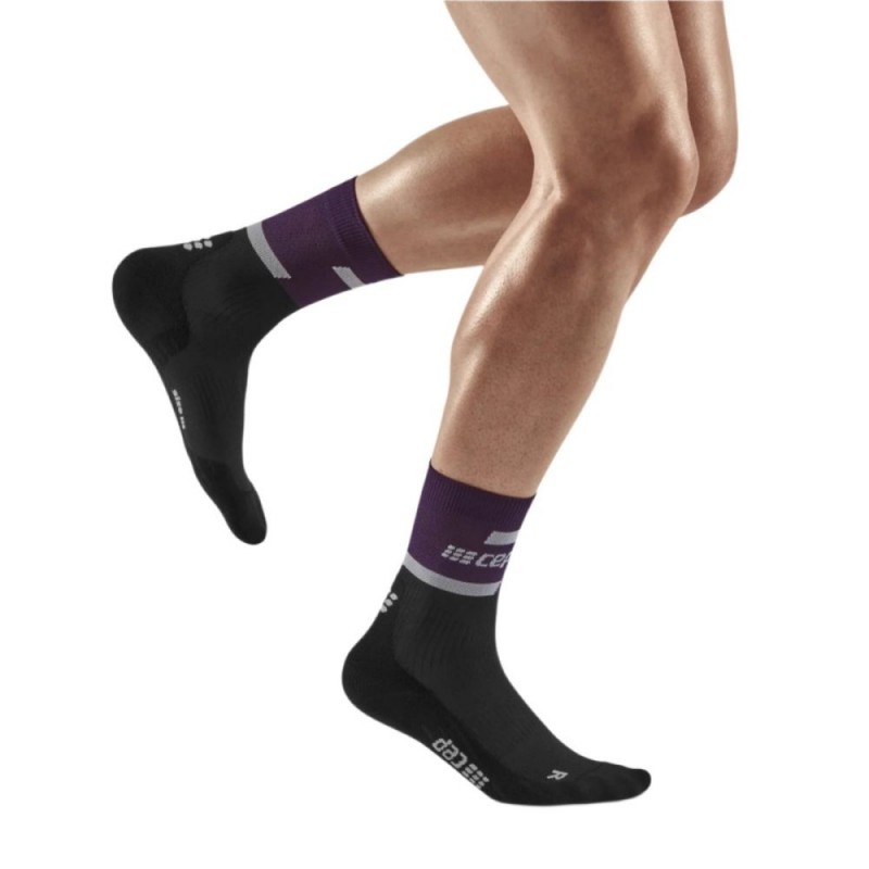 Мужские компрессионные спортивные носки CEP арт. C104M-P5, цвет фиолетовый-черный изготовлены из высокотехнологичных материалов по технологии круговой вязки. Асимметричный носок и усовершенствованная конструкция создают более совершенную анатомическую посадку, носки отлично сидят на ноге, не сползают, не натирают. Поддерживающая компрессия улучшает циркуляцию крови в стопе и предотвращает образование отеков во время использования. Специальные технологии влагоотведения и терморегуляции обеспечивают сухость ног в любую погоду. Мягкая подошва и анатомический дизайн изделий способствует максимальному комфорту во время тренировок.