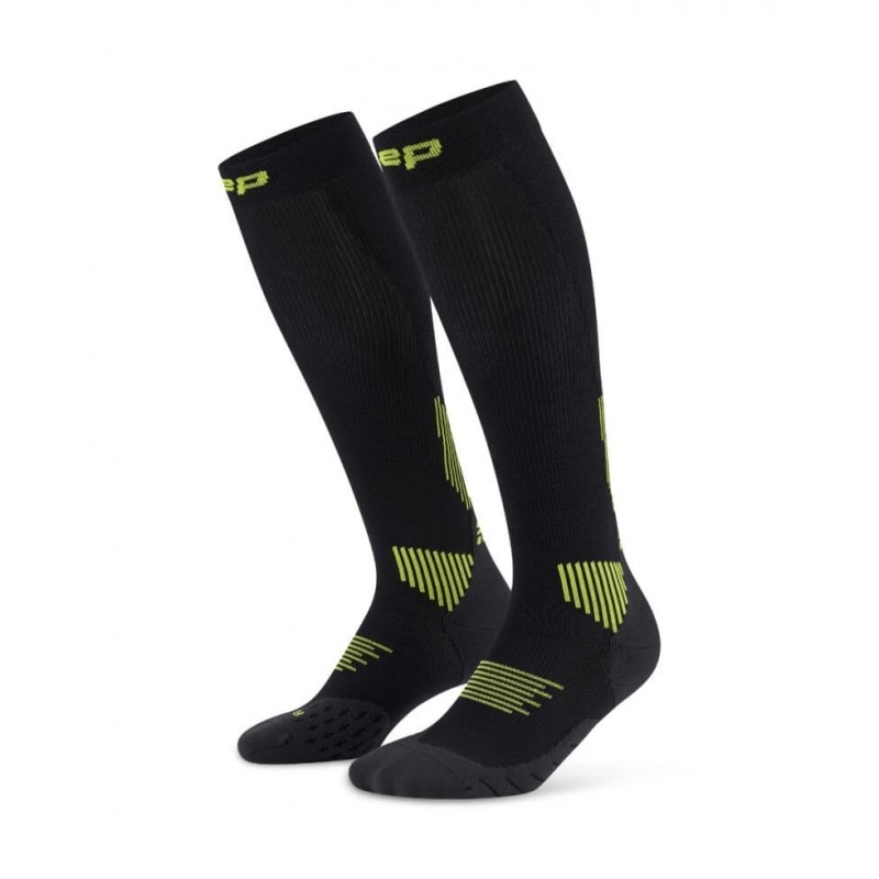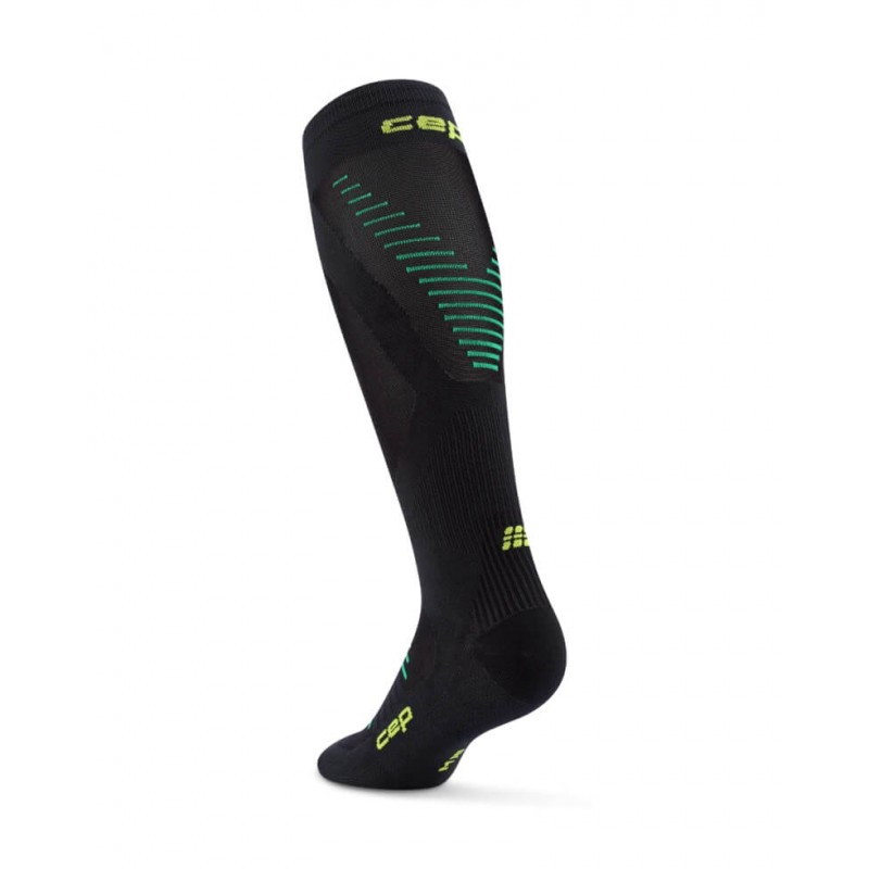 Мужские компрессионные ультратонкие гольфы CEP PRO для бега арт. C1UPM-5, цвет черный спортивные гольфы изготовлены из высокотехнологичных материалов по технологии круговой вязки, используются в различных спортивных дисциплинах для достижения максимального комфорта при тренировках, способствуют снижению риска получения травм. Благодаря анатомической посадке гольфы отлично сидят на ноге, не сползают, не натирают. Поддерживающая компрессия улучшает циркуляцию крови в стопе и предотвращает образование отеков во время тренировок. Специальные технологии влагоотведения и терморегуляции обеспечивают сухость ног в любую погоду. Пряжа с внедренными молекулами карбона обладает чрезвычайной прочностью, высокой эластичностью, отличной воздухопроницаемостью и сверхлегким весом.