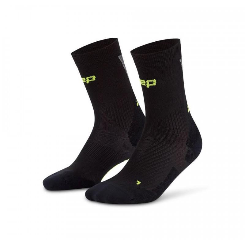 Мужские компрессионные ультратонкие носки CEP для бега арт. C2UUM-5, цвет черный спортивные носки для различных видов спорта. Носки изготовлены из высокотехнологичных материалов по технологии круговой вязки. Асимметричный носок и усовершенствованная конструкция создают более совершенную анатомическую посадку, носки отлично сидят на ноге, не сползают, не натирают. Поддерживающая компрессия улучшает циркуляцию крови в стопе и предотвращает образование отеков во время использования. Специальные технологии влагоотведения и терморегуляции обеспечивают сухость ног в любую погоду.