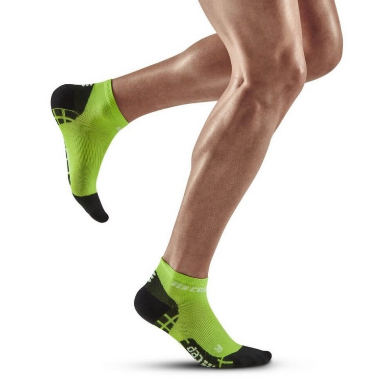 Мужские ультратонкие короткие носки CEP для бега арт. C09UUM-Z, цвет зеленый изготовлены из высокотехнологичных материалов по технологии круговой вязки, используются в различных спортивных дисциплинах для достижения максимального комфорта при тренировках, способствуют снижению риска получения травм. Благодаря анатомической посадке носки отлично сидят на ноге не сползают, не натирают. Поддерживающая компрессия улучшает циркуляцию крови в стопе и предотвращает образование отеков во время тренировок. Специальные технологии влагоотведения и терморегуляции обеспечивают сухость ног в любую погоду. Пряжа с внедренными молекулами карбона обладает чрезвычайной прочностью, высокой эластичностью, отличной воздухопроницаемостью и сверхлегким весом