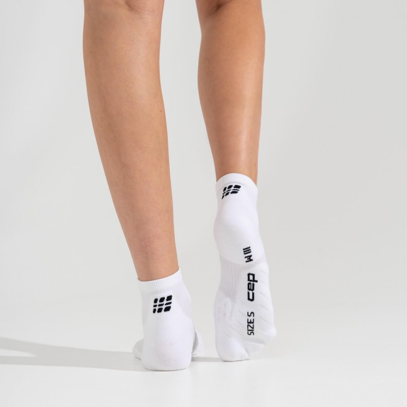 Женские компрессионные короткие носки CEP арт. C095W-0, цвет белый изготовлены из высокотехнологичных материалов по технологии круговой вязки, используются в различных спортивных дисциплинах для достижения максимального комфорта при тренировках, способствуют снижению риска получения травм. Благодаря анатомической посадке носки отлично сидят на ноге, не сползают, не натирают. Поддерживающая компрессия улучшает циркуляцию крови в стопе и предотвращает образование отеков во время тренировок. Специальные технологии влагоотведения и терморегуляции обеспечивают сухость ног в любую погоду. Подошва носков имеет хорошее сцепление с обувью, что повышает устойчивость при движении.