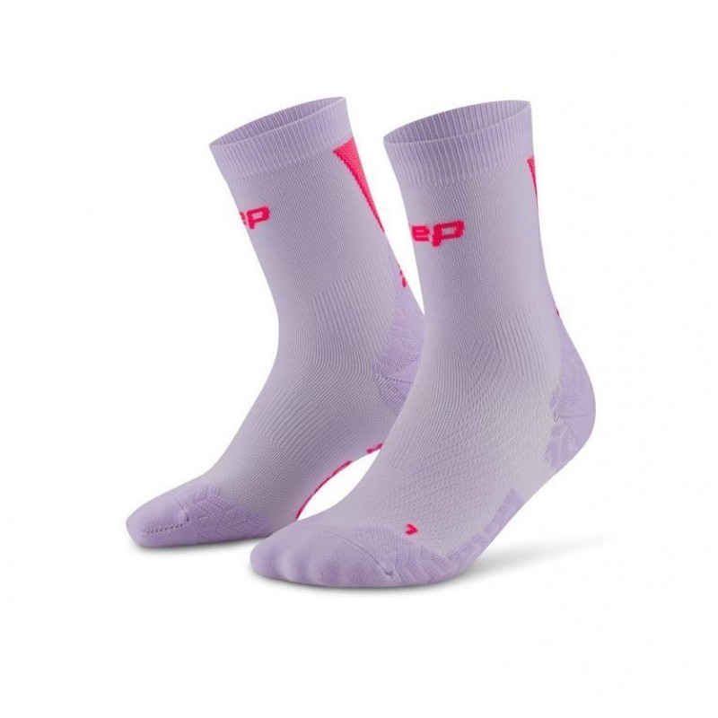 Женские компрессионные ультратонкие носки CEP для бега арт. C2UUW-W4, цвет розовый-лиловый спортивные носки для различных видов спорта. Носки изготовлены из высокотехнологичных материалов по технологии круговой вязки. Асимметричный носок и усовершенствованная конструкция создают более совершенную анатомическую посадку, носки отлично сидят на ноге, не сползают, не натирают. Поддерживающая компрессия улучшает циркуляцию крови в стопе и предотвращает образование отеков во время использования. Специальные технологии влагоотведения и терморегуляции обеспечивают сухость ног в любую погоду.