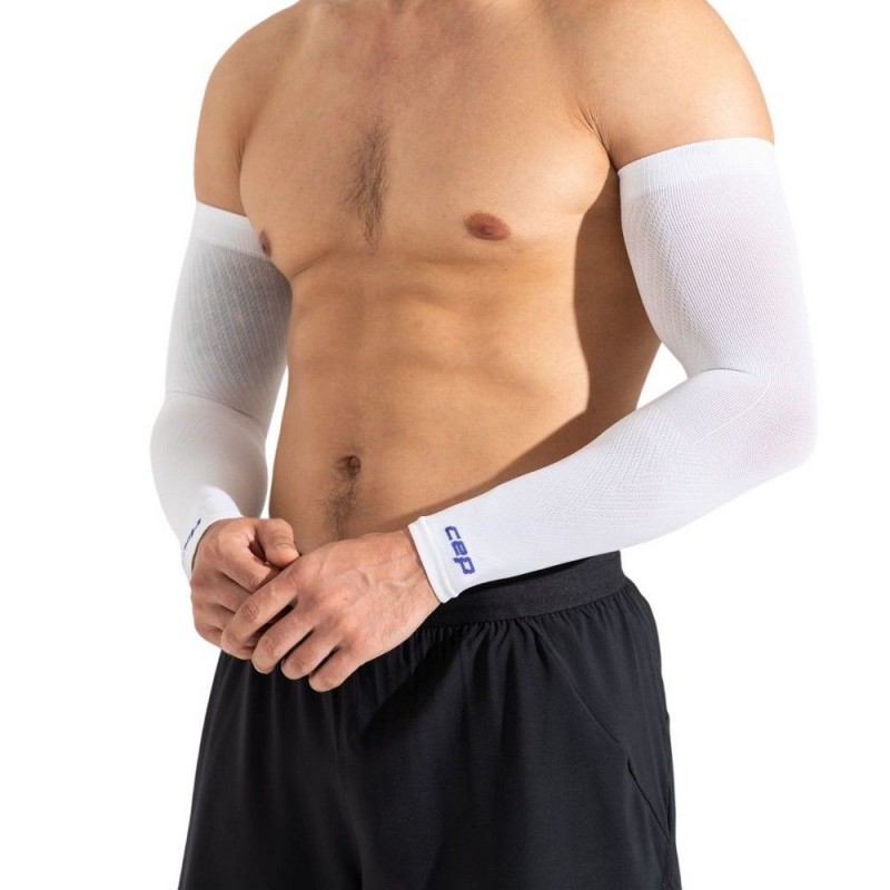 Компрессионные рукава CEP Run Ultralight для занятий спортом арт. CU71U-0, цвет белый рукава для занятий спортом созданы для комфортных и эффективных тренировок разной интенсивности. Материалы и сетчатые вставки помогают сохранять комфорт и обеспечивают повышенную воздухопроницаемость и терморегуляцию даже во время интенсивных нагрузок. Поддерживающая компрессия стабилизирует мышцы, улучшает кровообращение, минимизирует мышечные вибрации и предотвращает образование отеков во время использования. Усовершенствованная конструкция создает более совершенную анатомическую посадку, рукава отлично прилегают к коже, не сползают, не натирают.