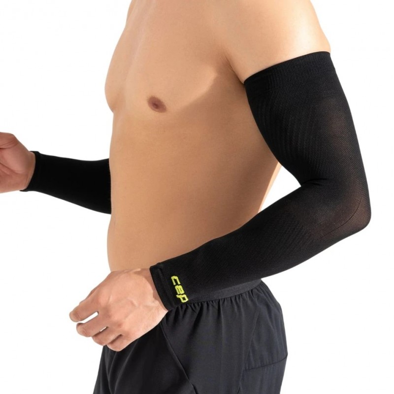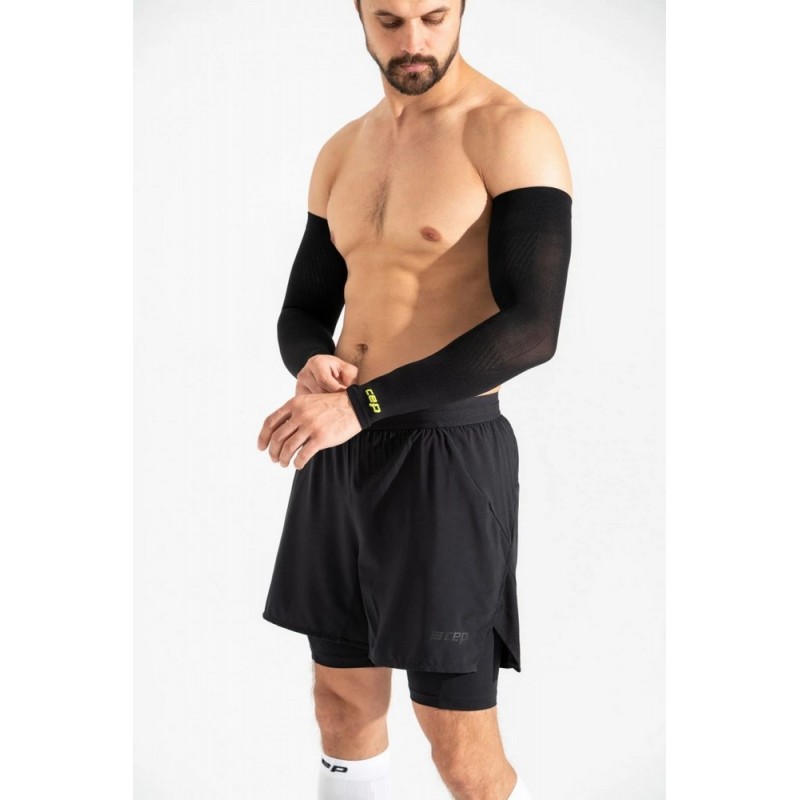 Компрессионные рукава CEP Run Ultralight для занятий спортом арт. CU71U-5, цвет черный рукава для занятий спортом созданы для комфортных и эффективных тренировок разной интенсивности. Материалы и сетчатые вставки помогают сохранять комфорт и обеспечивают повышенную воздухопроницаемость и терморегуляцию даже во время интенсивных нагрузок. Поддерживающая компрессия стабилизирует мышцы, улучшает кровообращение, минимизирует мышечные вибрации и предотвращает образование отеков во время использования. Усовершенствованная конструкция создает более совершенную анатомическую посадку, рукава отлично прилегают к коже, не сползают, не натирают.