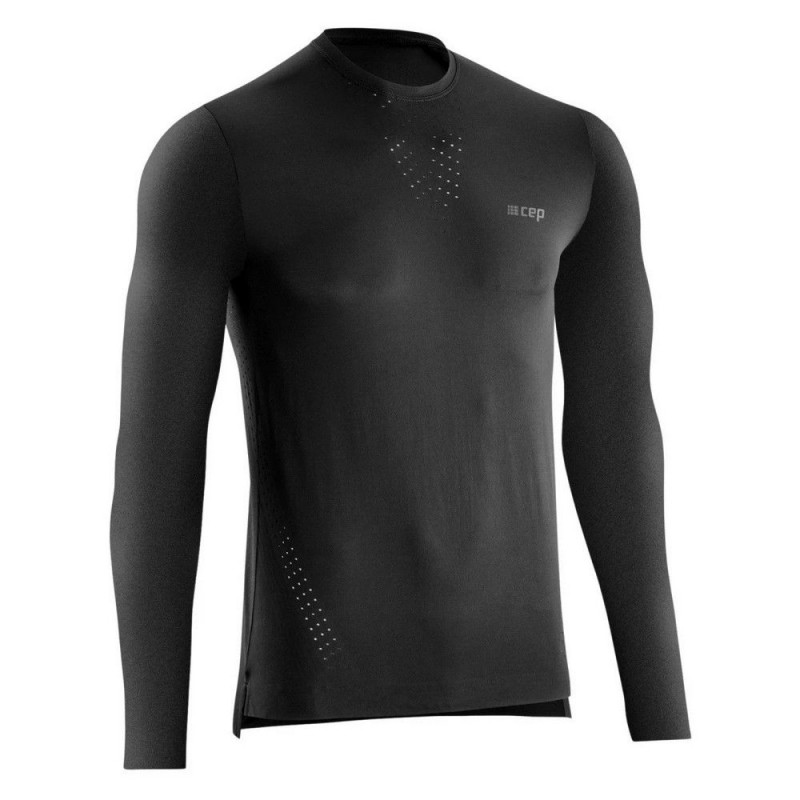 Мужская ультралёгкая футболка с длинным рукавом CEP Run Ultralight для бега арт. C811M-5, цвет черный легкая дышащая футболка с лазерной перфорацией создана для комфортных и эффективных тренировок разной интенсивности. Модель подойдёт тем, кому важны свобода движений, эффективный отвод влаги и надёжная посадка. Современные технологии и материалы помогают сохранять комфорт и обеспечивают повышенную воздухопроницаемость и терморегуляцию даже во время интенсивных нагрузок. Продуманный бесшовный крой и идеальная посадка делает футболку универсальным вариантом для повседневных тренировок и забегов.