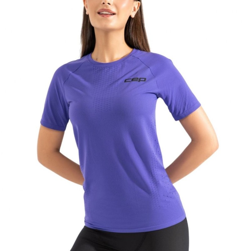 Женская ультралёгкая футболка с короткими рукавами CEP Core Run Ultralight арт. C801W-P, цвет фиолетовый легкая дышащая футболка с лазерной перфорацией создана для комфортных и эффективных тренировок разной интенсивности. Модель подойдёт тем, кому важны свобода движений, эффективный отвод влаги и надёжная посадка. Современные материалы, перфорация и сетчатые вставки помогают сохранять комфорт и обеспечивают повышенную воздухопроницаемость и терморегуляцию даже во время интенсивных нагрузок, а продуманный бесшовный крой делает футболку универсальным вариантом для повседневных тренировок и забегов.