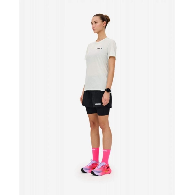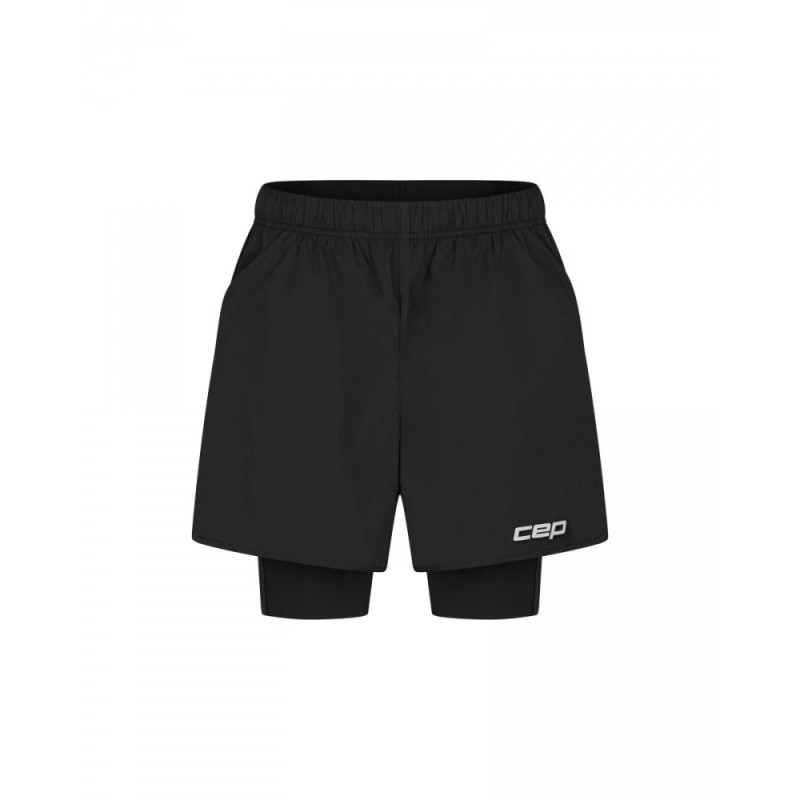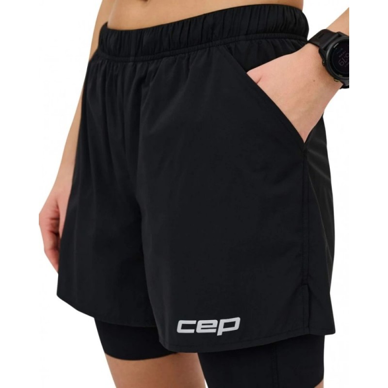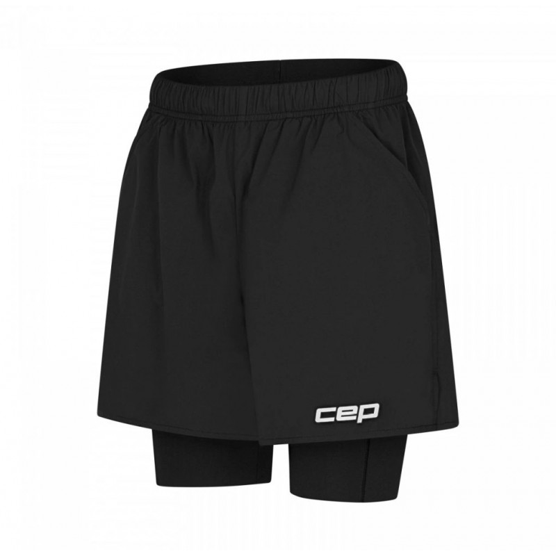 Женские компрессионные шорты CEP 2 в 1 для бега арт. C48W-5, цвет черный двухслойные спортивные шорты для занятий спортом с внутренними компрессионными шортами для поддержки тонуса мышц бедер созданы для комфортных и эффективных тренировок разной интенсивности. Модель состоит из двух слоев. Внутренний слой обеспечивает надежную посадку с мягкой компрессией, а свободный внешний слой подходит для активных амплитудных движений. Эластичный дышащий материал помогает сохранять комфорт даже во время интенсивных нагрузок, а продуманный крой делает шорты универсальным вариантом для повседневных тренировок и забегов. В конструкции предусмотрены два скрытых кармана на молнии для вещей первой необходимости.
