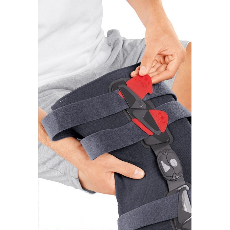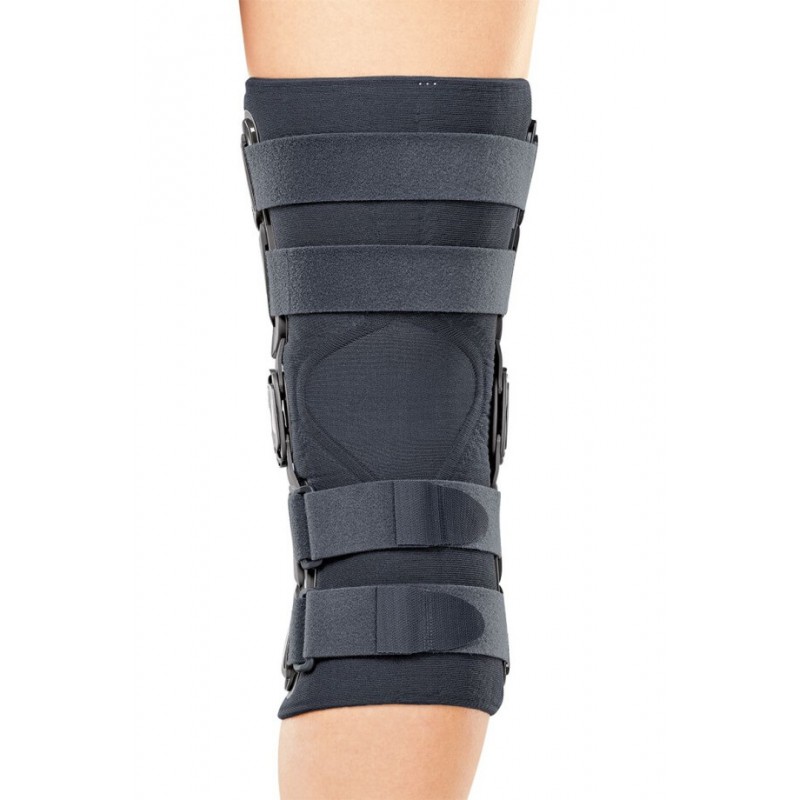 Ортез коленный полужесткий регулируемый с шарнирами medi Collamed physioglide TF предназначен для стабилизации коленного сустава и уменьшения болевого синдрома при повреждении и дисфункции боковых или крестообразных связок, повреждении менисков, дегенеративных изменениях в суставе, во время реабилитации после операций. Ортез состоит из разъемной манжеты, двух металлических пластин по бокам и полицентрического шарнира physioglide TF. Манжета изготовлена из современного дышащего материала с ионами серебра, обеспечивающая высокие гигиенические свойства изделия. Регулировку угла сгибания и разгибания ортеза можно осуществлять с помощью ограничительных вставок. Диапазоны сгибания и разгибания сустава: