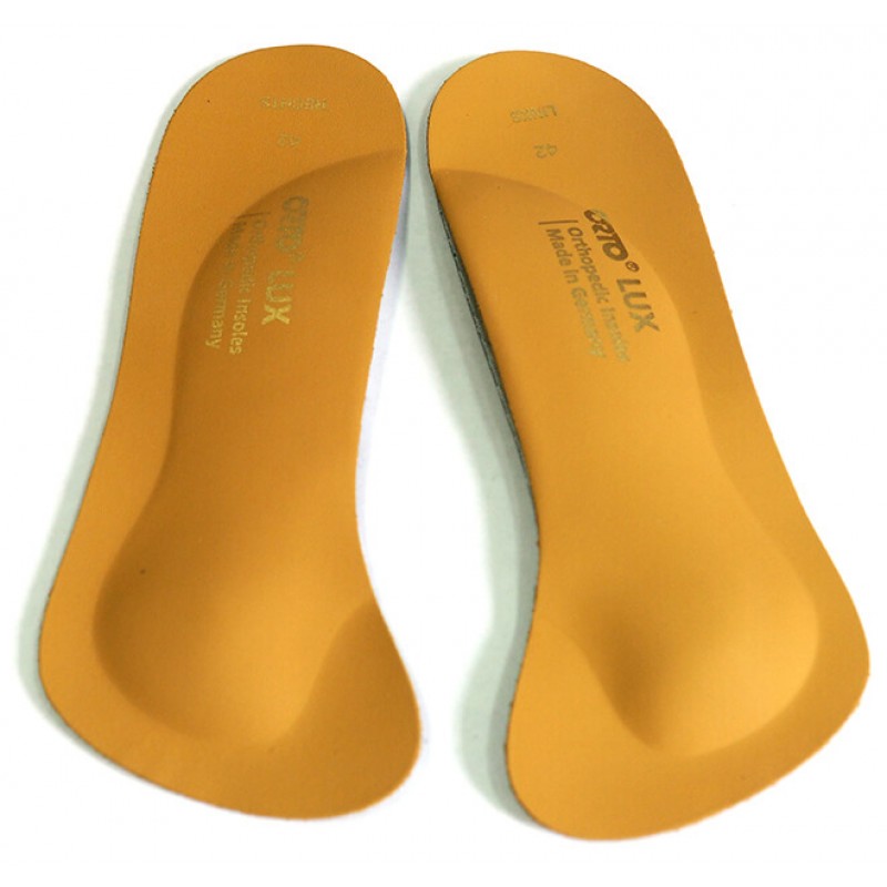Полустельки ортопедические мягкие ORTO арт. Lux – тонкие бескаркасные полустельки-супинаторы для модельной обуви на каблуке до 7 см, выполнены на основе из специального материала Carbosan® с верхнем покрытием из натуральной кожи. Имеют смягчающую вставку в области внутреннего и поперечного сводов, а также небольшой смягчающий слой с выраженным рельефом на подошвенной поверхности. Особенности конструкции стелек позволяют применять их как в открытой, так и закрытой обуви с узким носком. Амортизируют ударные нагрузки на опорно-двигательный аппарат, разгружают опорную поверхность пятки, поддерживают своды стопы, обеспечивают ортопедическую адаптацию модельной обуви, повышают комфортность обуви в том числе на высоком каблуке.
