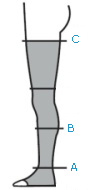Измерение участков нужно проводить утром до появления отёчности на ногах. Размер изделия подбирать по таблице подбора и согласно конструктивным особенностям конечности, изделия разработаны на длину ноги от 65 до 74 см.