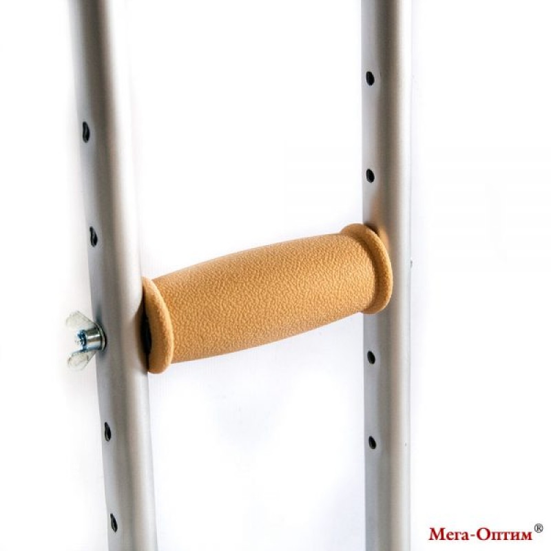 Костыли подмышечные алюминиевые Мега-Оптим арт. Универсал КАУ - подмышечные костыли на рост человека от 130 до 190 см из лёгкого прочного алюминиевого сплава обеспечивают дополнительную опору при ходьбе и снимают нагрузку с повреждённой конечности. Ручки и подмышечные опоры выполненны из мягкого материала. Костыли имеют двойную регулировку с шагом 25 и 35 мм., нижняя часть с кнопочным механизмом регулировки, верхняя с помощью винта. Максимальная нагрузка - 100 кг. Вес комплекта - 1,92 кг. Комплект поставки: подмышечные костыли - 2 шт.