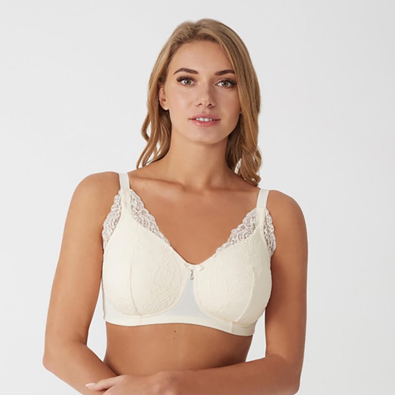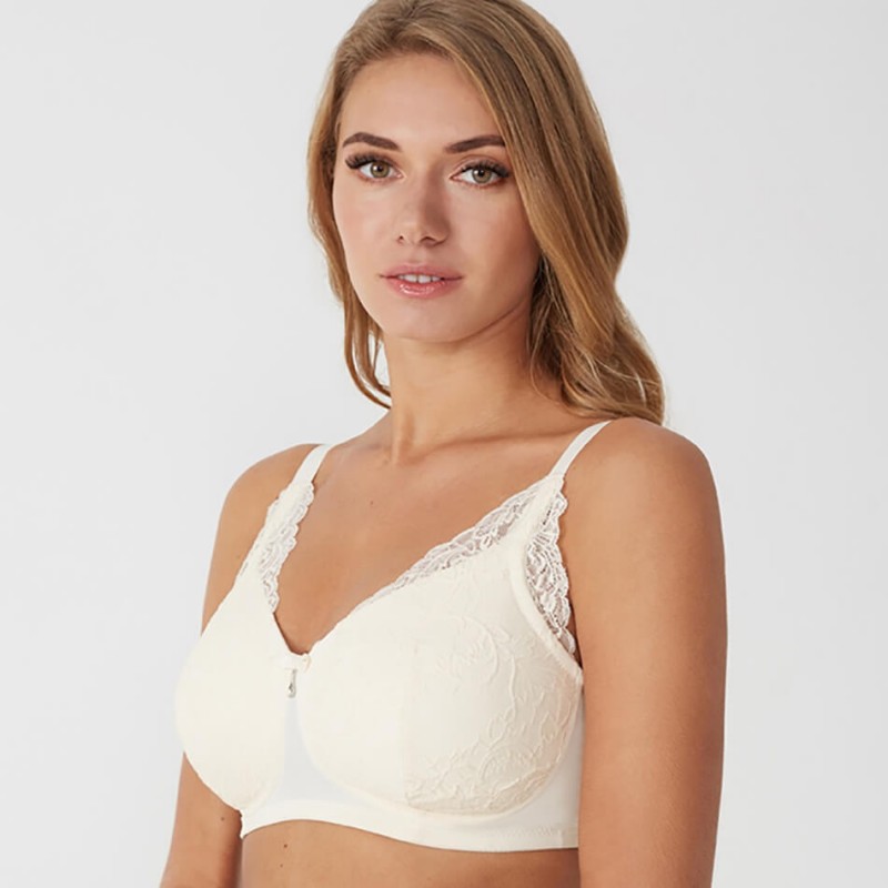 Бюстгальтер Confidance Rumba арт. 1203, цвет слоновая кость - бюстгальтер для повседневной носки, мягкие кружевные «крылышки» маскируют дефицит ткани и неровности в области подмышек и подключичной зоне. Чашки формованные, плотные без косточек, не деформируются. Кармашки выполнены из 100 % хлопкового трикотажного полотна. Завышенная линия декольте маскирует неровности и асимметрию. Бретели, регулируемые по всей длине, расширяются с увеличением размера. Застежка бюстгальтера - на спине, с увеличением размера застежка увеличивается с 2х до 3х рядов.